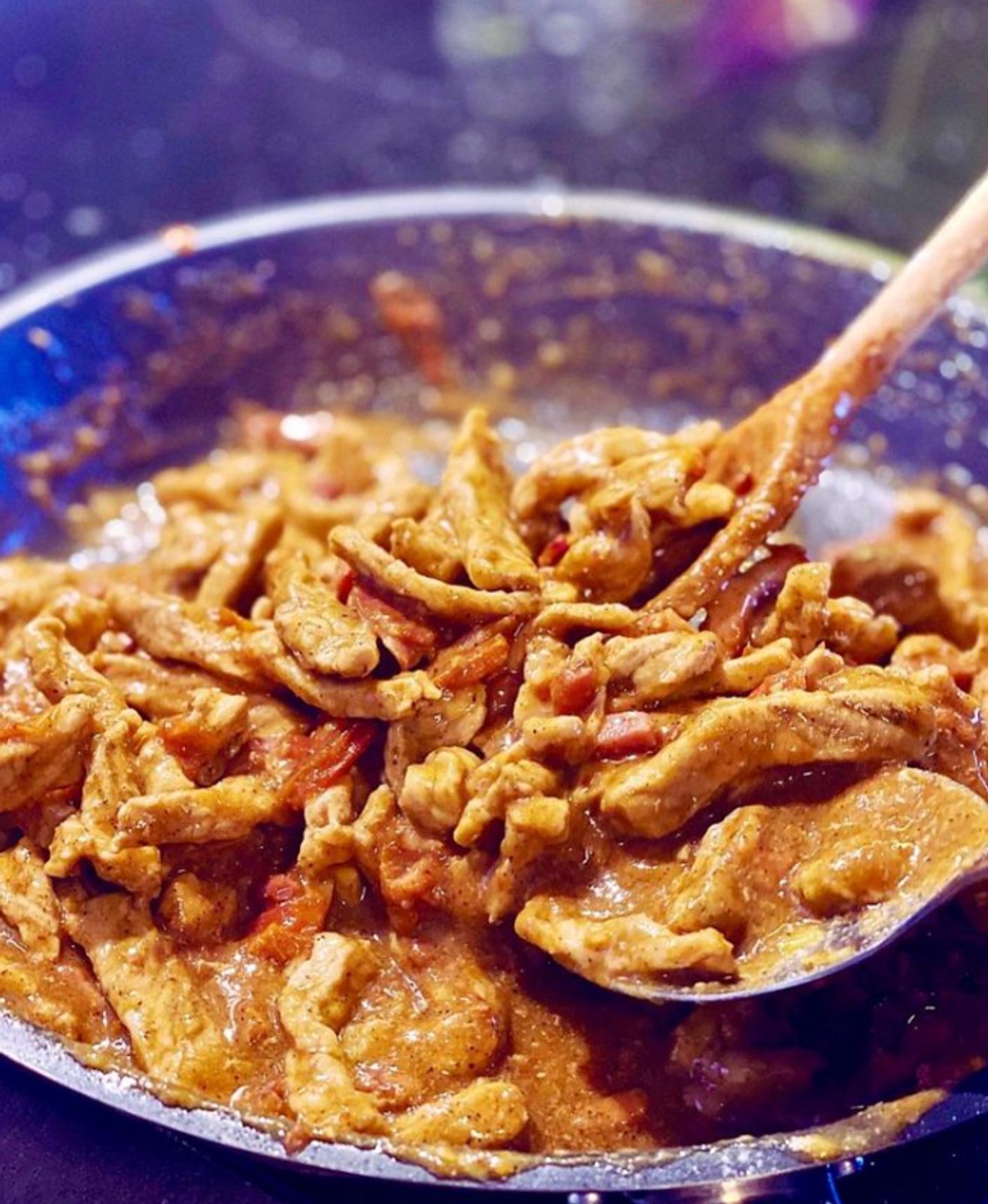 Maso dusíte do změknutí a zhoustnutí omáčky. Podává se například s květákovým pyré nebo LowCarb pečivem.